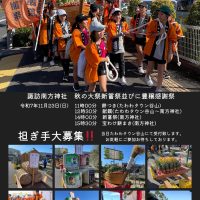 令和7年11月23日(日)に秋の大祭新嘗祭並びに豊穣感謝祭をいたします。 ・11時より餅つき(たわわタウン谷山) ・12時30分より献饌(たわわタウン谷山から南方神社までお供え物を担いで運びます) ・14時より新嘗祭(南 …